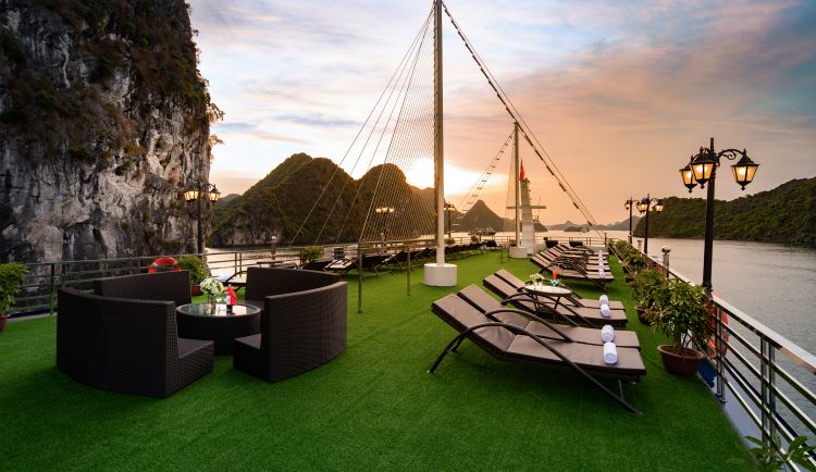 17h30 : Profitez d'une démonstration de cuisine (vous apprenant à préparer notre spécialité, les rouleaux de printemps) et de la soirée au coucher du soleil gratuite sur le pont supérieur avec du vin local et des fruits frais.