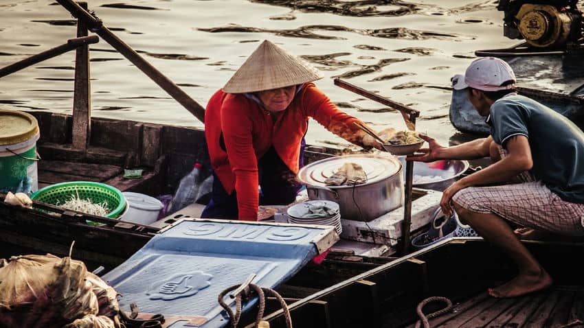 En parlant du petit déjeuner, vous pouvez acheter des soupes de nouilles et du café, des fruits, etc., directement depuis les bateaux. Au moment de la rédaction, un bol de soupe de nouilles avec de la viande coûte environ 40 000 VND. Vous pouvez le déguster sur votre bateau, puis le vendeur reviendra pour récupérer le bol et la cuillère.