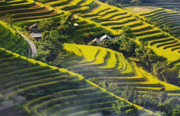Des rizières en terrasses spectaculaires :elles sont classées comme patrimoine naturel du Vietnam car elles ont été reconnues comme les plus belles du Vietnam, elles changent de couleurs selon les saisons et la plus belle saison pour visiter les rizières en terrasse à Hoang Su Phi est du début aout à fin de septembre.