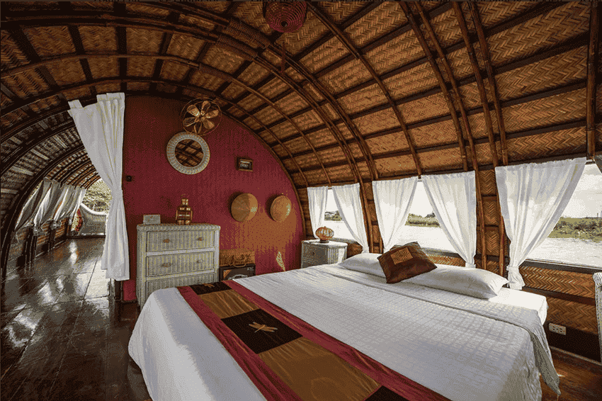 Vous déménagez à Sa Dec. Visitez le palais Kien An, une ancienne œuvre architecturale chinoise qui a contribué à la création de la communauté chinoise de Dong Thap pendant près de cent ans. Le dîner est servi à bord. Profitez de votre première nuit sur le bateau de croisière Song Xanh sur la rivière Tien.