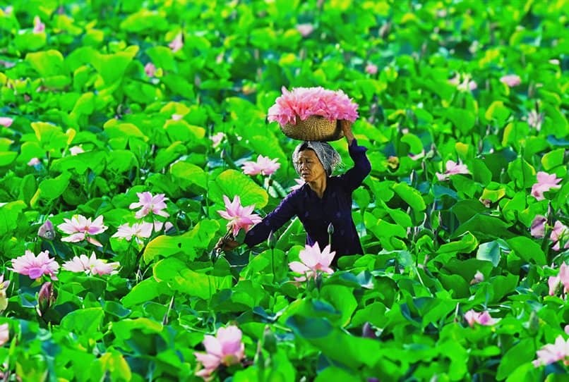 À la belle saison, il n'est pas rare d'apercevoir de jolies Vietnamiennes se prêtant à d'élégantes séances photos au milieu des lotus en fleurs. Bien plus qu'un simple ornement, cette fleur occupe une place de choix dans la culture locale. Ses boutons servent à la préparation d'un thé parfumé, souvent utilisé lors de cérémonies et fêtes traditionnelles. Les tiges alimentent les savoureuses salades vietnamiennes, les graines sont consommées grillées en guise de friandises, et les feuilles servent d'enveloppes naturelles pour la cuisson à la vapeur. Riche de sens et d'usages, d'une beauté à couper le souffle, il n'est guère étonnant que le lotus soit devenu l'emblème floral du Vietnam.